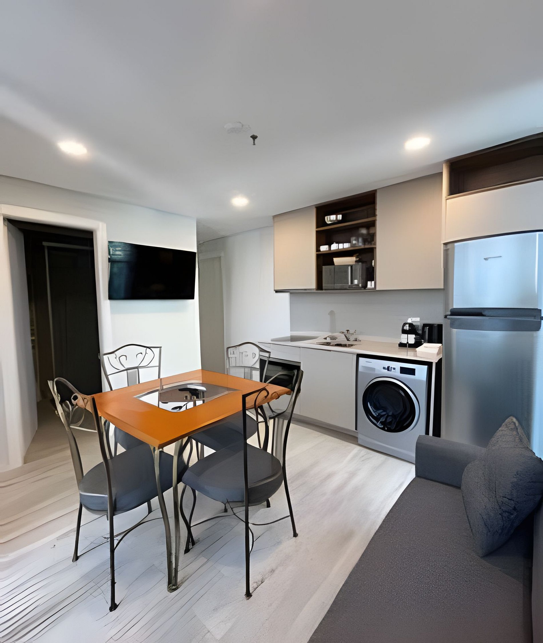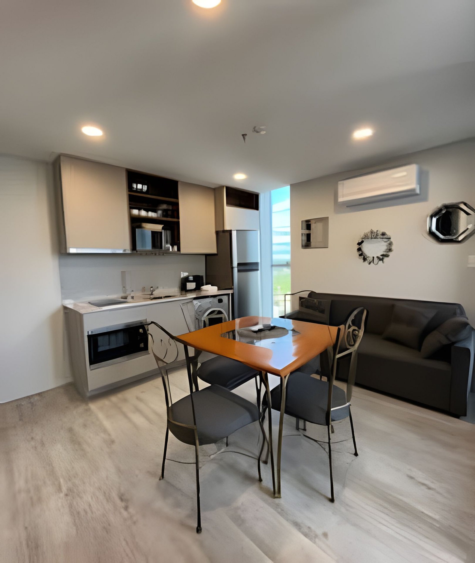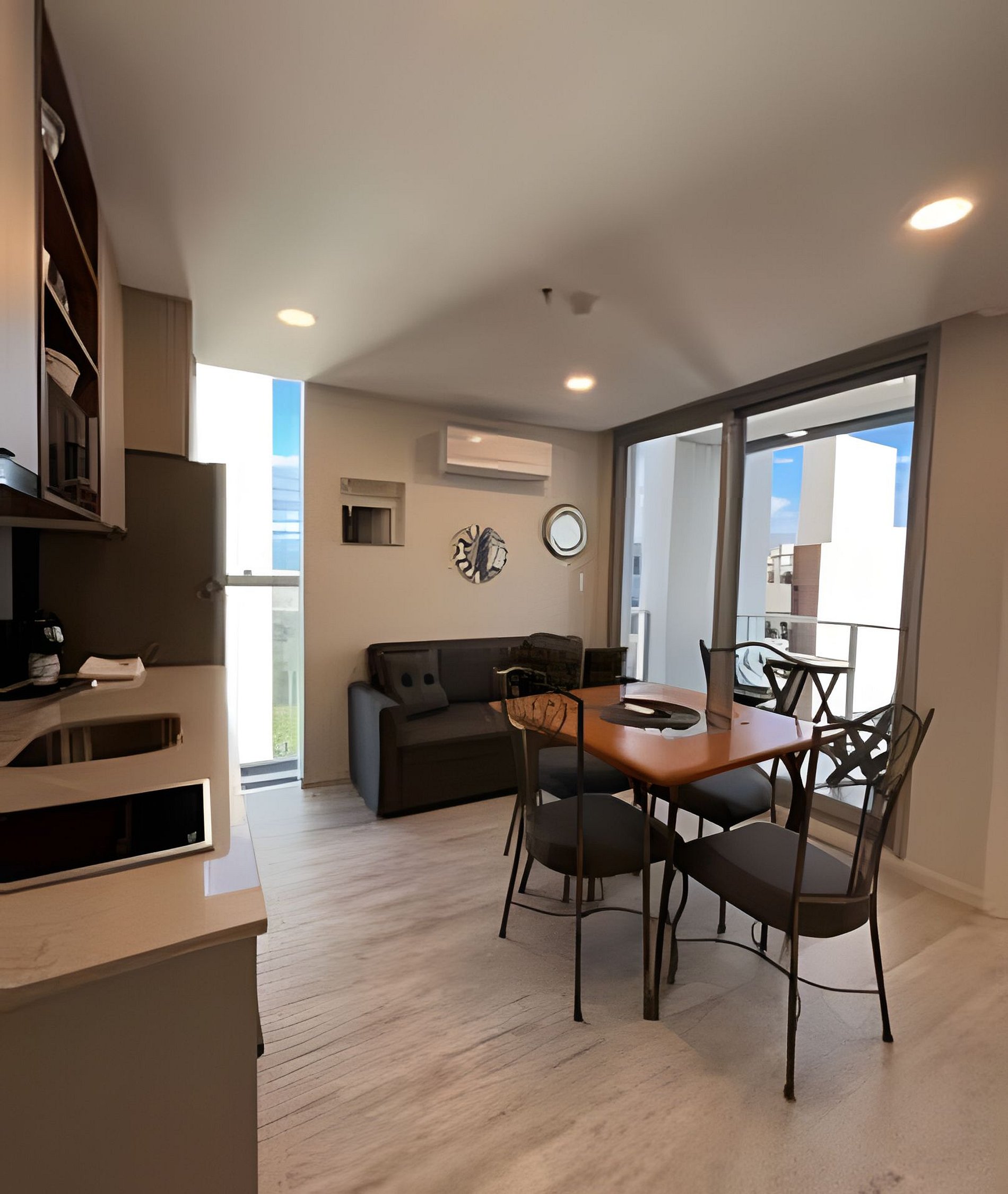 Este acogedor departamento cuenta con todo lo que necesitás: cama matrimonial, sofá, cocina y comedor completamente equipado. Viví la experiencia de sentirte en casa, con una vista espectacular al skyline del eje corporativo.