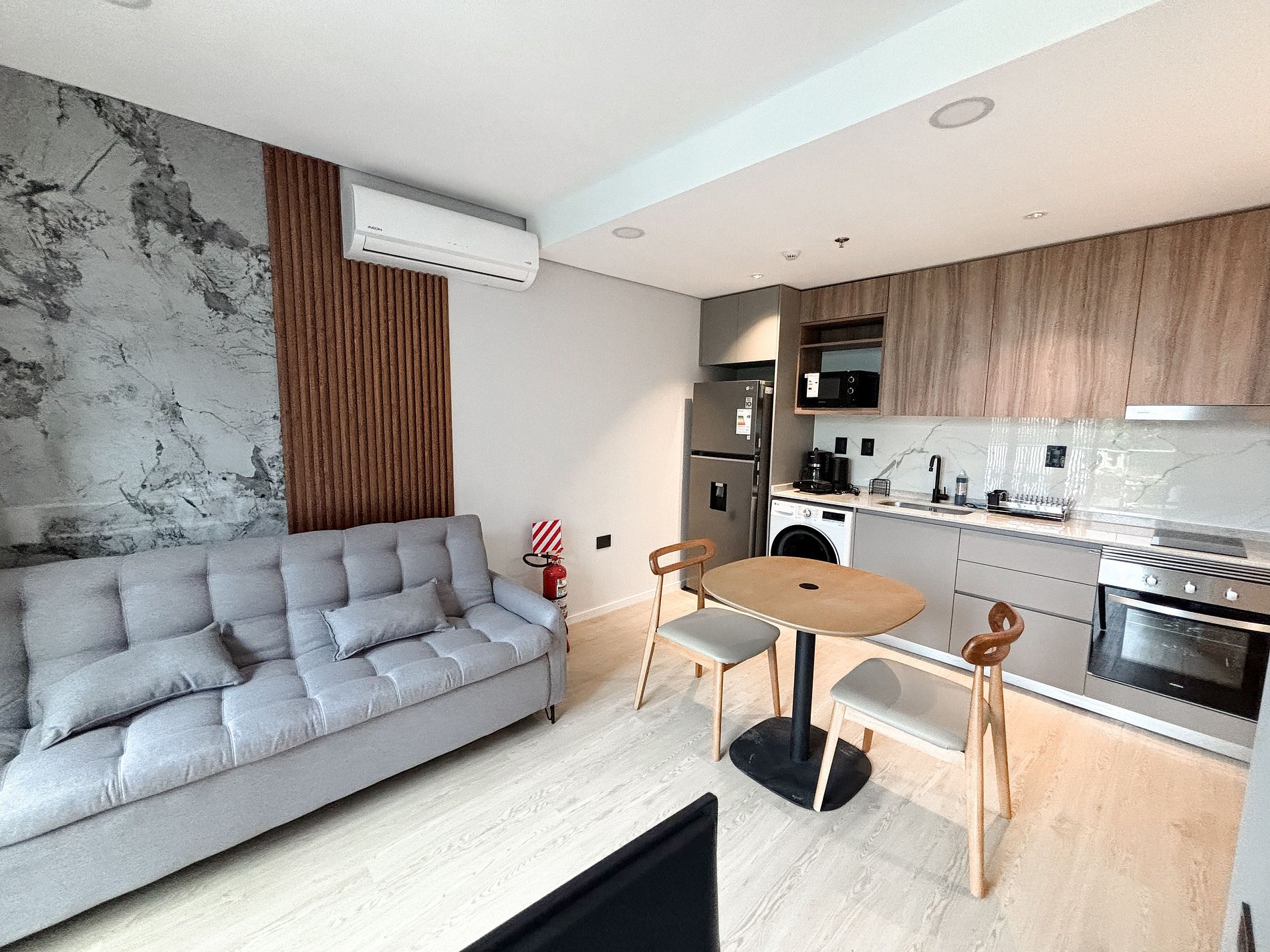 Acogedor y moderno departamento con todas las comodidades para tu estadía en Asunción. A pasos del Shopping Paseo La Galería y del Shopping del Sol y a 10 min del Aeropuerto. Disfruta de piscina, gimnasio y 20 % de descuento en la cafetería del edificio. ¡Perfecto para explorar la ciudad!