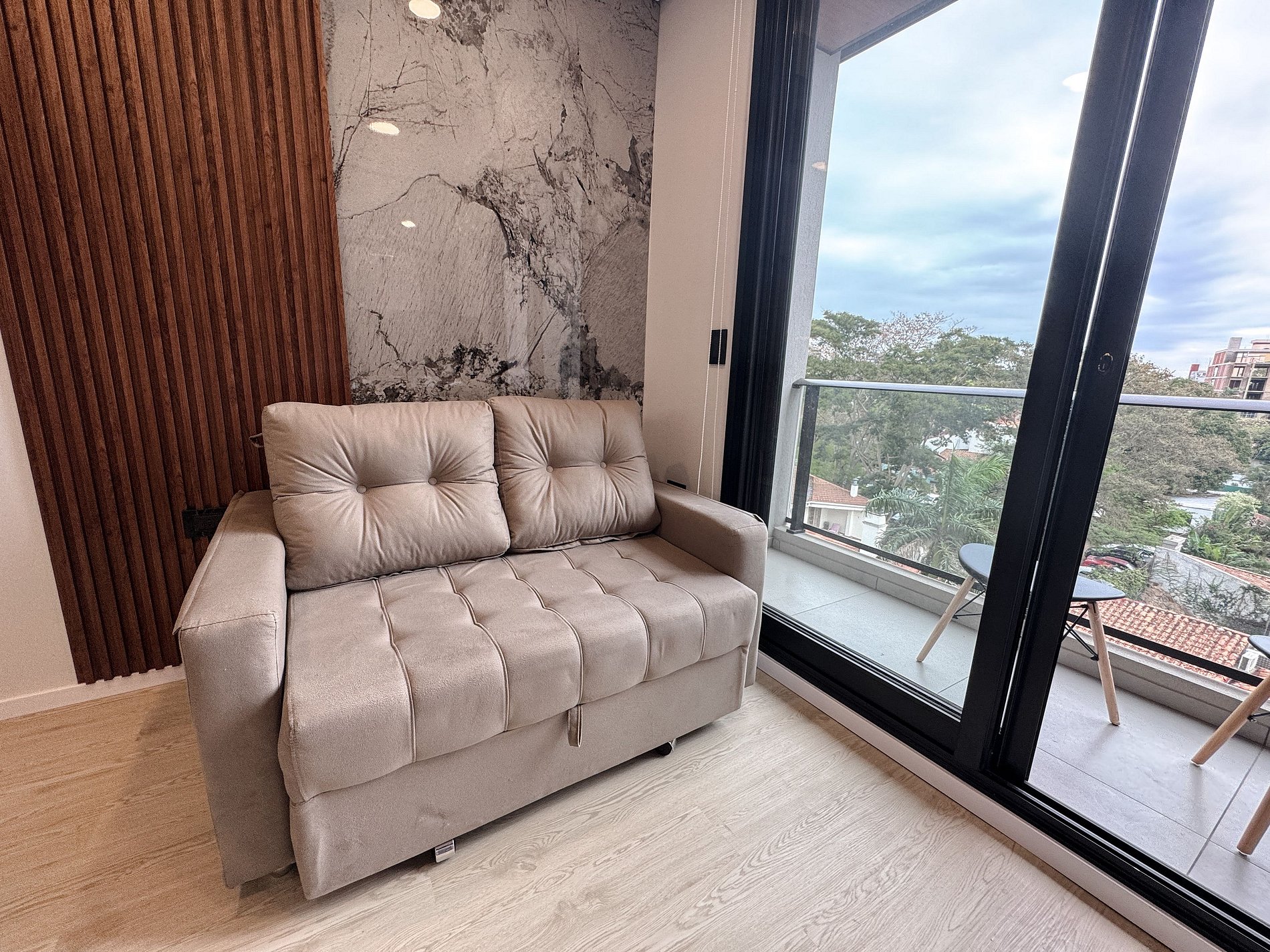 Departamento minimalista y moderno, a pasos del Shopping del Sol y Paseo La Galería. Ideal para quienes buscan diseño y confort. Wi-Fi rápido, piscina, cowork, gimnasio y terraza. A 10 min del aeropuerto. Incluye 20% de descuento en la cafetería del edificio.