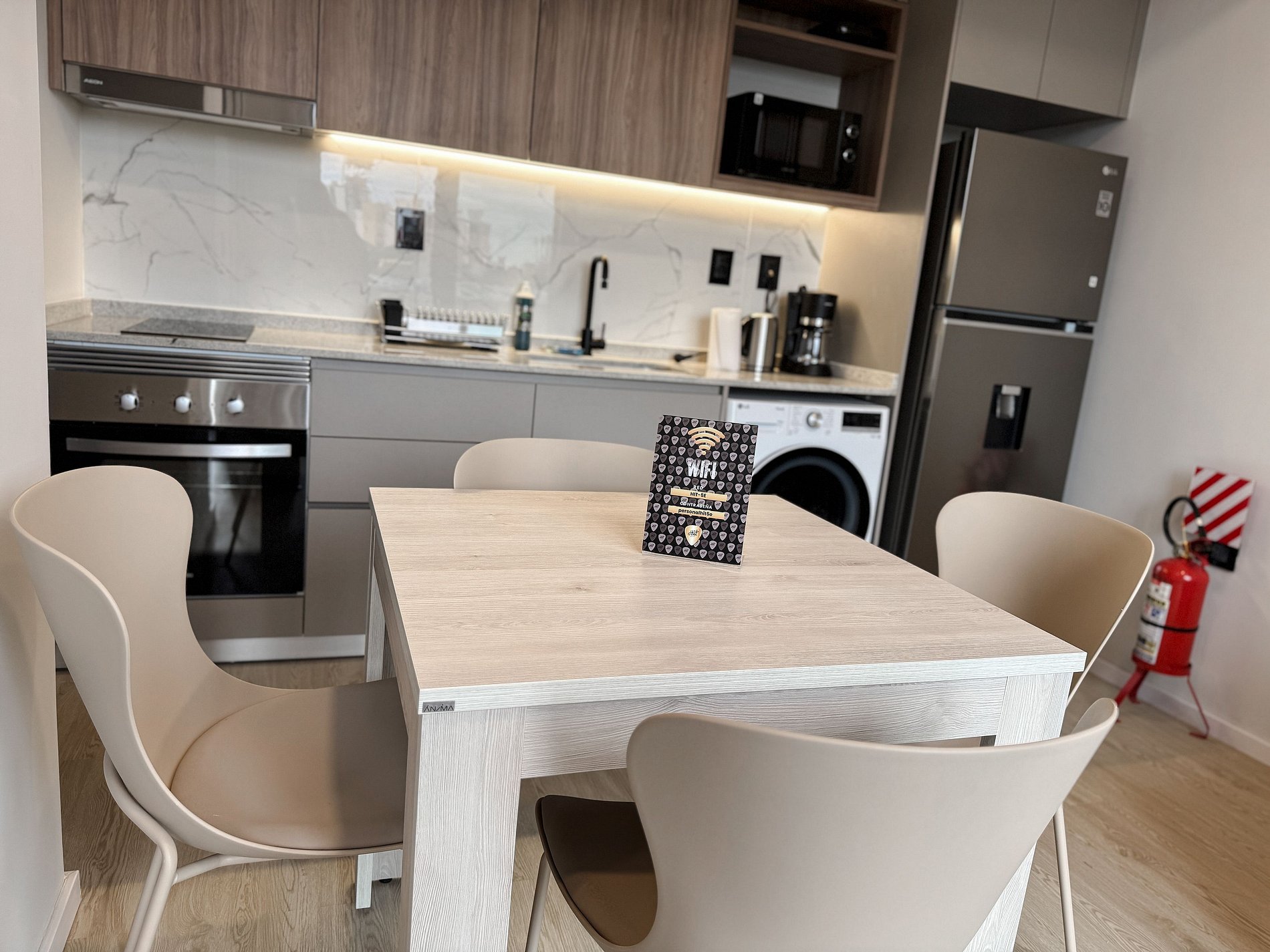 El espacio cuenta con Smart TV, aire acondicionado, cocina equipada, microondas, cafetera, mixtera, heladera, utensilios y mobiliario contemporáneo. El edificio ofrece cowork silencioso, gimnasio moderno, piscina, terrazas con barra, laundry y seguridad 24 hs. Estacionamiento pago sujeto a disponibilidad (opcional)