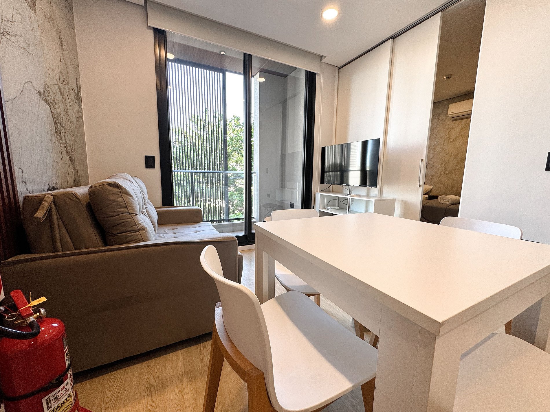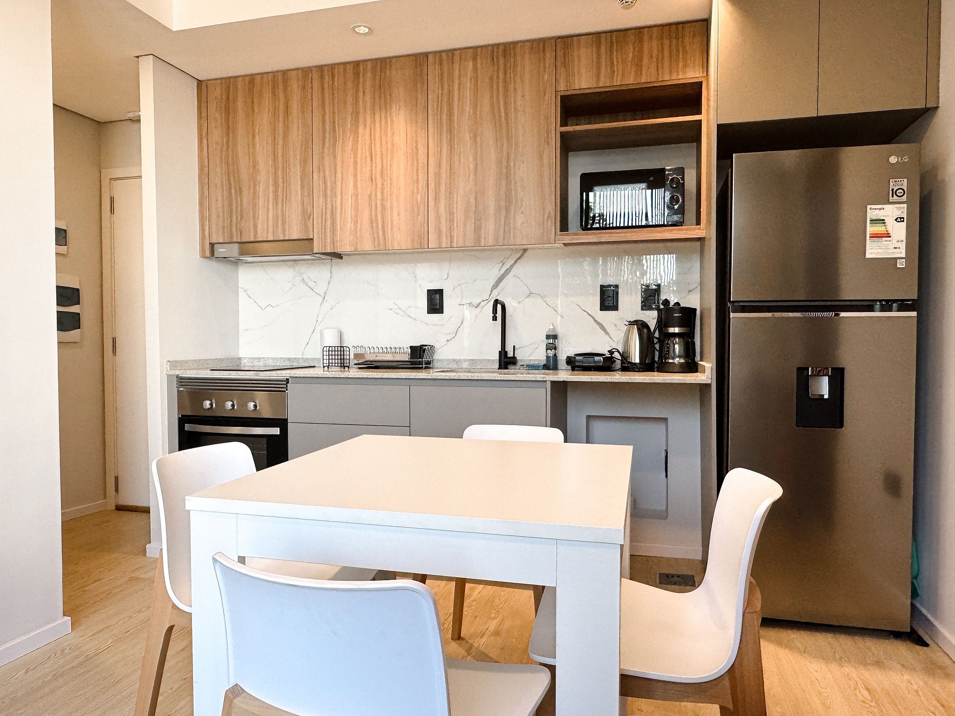 Totalmente equipado con Smart TV, Wi-Fi de alta velocidad, aire acondicionado, cafetera, microondas, mixtera y utensilios. El edificio cuenta con cowork, laundry y estacionamiento pago, sujeto a disponibilidad (opcional). Seguridad 24 hs.